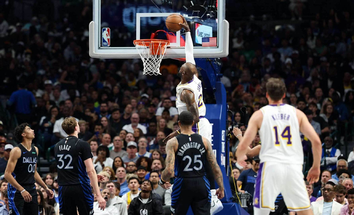 这就意味着,眼下湖人的一切希望,都寄托在41岁的詹姆斯身上了,如果詹姆斯可以扛着球队撑过季后赛首轮,晋级西部半决赛,那么湖人就很有机会等会东契奇甚至是里夫斯,而在对阵独行侠的比赛中,詹姆斯的表现也确实给了湖人球迷一丝希望,全场比赛,詹姆斯出战38分钟,22投12中,得到30分9篮板15助攻1抢断。值得一提的是,比赛中詹姆斯还曾和场边球迷交流,詹姆斯说道:“我依然能打出这种表现。你明白我的意思吗?我依然能做到这些。只是之前球队不需要我一直这么打,你知道的?”